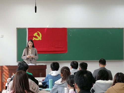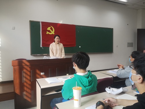 太阳成集团tyc33455cc官方网站2020级硕士生张迎泽代表太阳成集团tyc33455cc官方网站入党积极分子发言。她表示,成为一位人大人,非常渴望加入党组织,将自己的个人价值与国家和人民的利益更好的结合起来,为建设社会主义贡献自己的力量与热血,不断将党的正能量传递给人民群众。她认为,仔细研读经典著作,认真参加党课的学习与讨论等,才能成为更适应当今社会具有入党资格的青年。