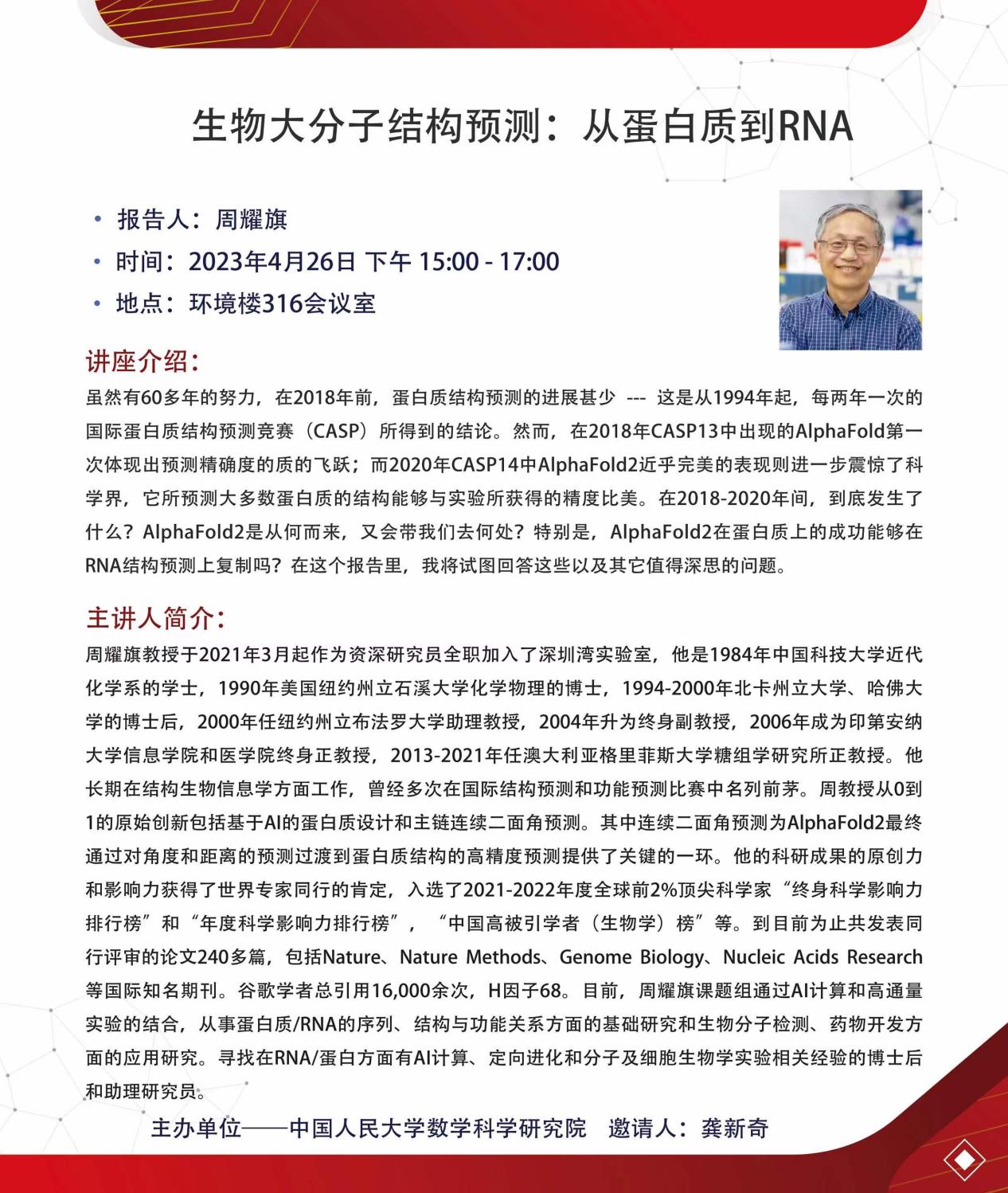 学术报告|生物大分子结构预测:从蛋白质到RNA