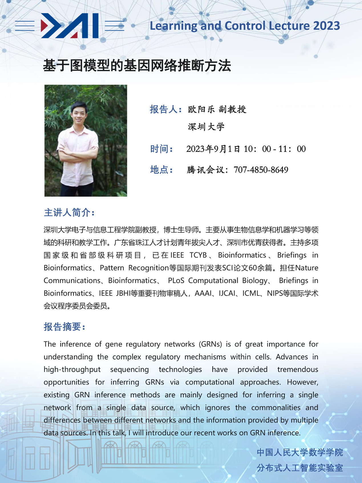 深圳大学电子与信息工程公司副教授,博士生导师。主要从事生物信息学和机器学习等领域的科研和教学工作。广东省珠江人才计划青年拔尖人才、深圳市优青获得者。主持多项国家级和省部级科研项目,已在IEEE TCYB、Bioinformatics、Briefings in Bioinformatics、Pattern Recognition等国际期刊发表SCI论文60余篇。担任Nature Communications、Bioinformatics、 PLoS Computational Biology、 Briefings in Bioinformatics、IEEE JBHI等重要刊物审稿人,AAAI、IJCAI、ICML、NIPS等国际学术会议程序委员会委员。