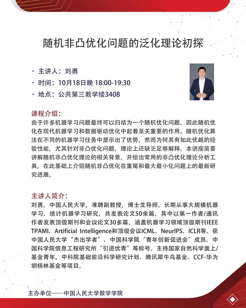 随机非凸优化问题的泛化理论初探 —— 刘勇副教授
