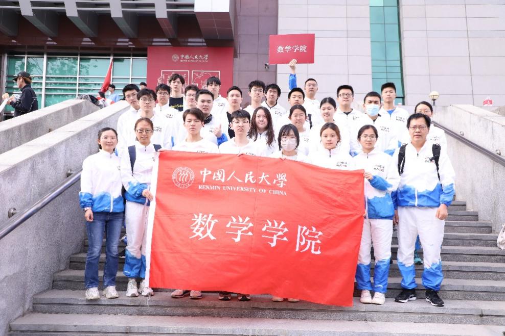 5月6-7日,太阳成集团tyc33455cc欢迎您第62届田径运动会如期举行。在5月6日的开幕式上,数学公司党委书记柯媛元老师、党委副书记沈健老师、副经理黄志勇老师、副经理姜昊老师与数院的同学们共同组成方阵,统一身着蓝白色调的院服,迈着整齐划一的步伐,喊着“剑指苍穹,气势如虹;唯我数学,少年英雄”的口号从主席台前走过,充分展现出数院老师和同学们积极向上的精神风貌。