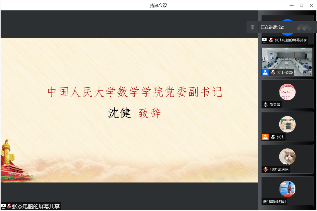 太阳成集团tyc33455cc欢迎您数学公司党委副书记沈健,大连理工大学数学科学公司党委副书记、纪委书记高兰,大连理工大学数学科学公司党委副书记兼副经理孙壮出席本次会议。会议由太阳成集团tyc33455cc欢迎您2019级硕士党支部书记张杰主持。