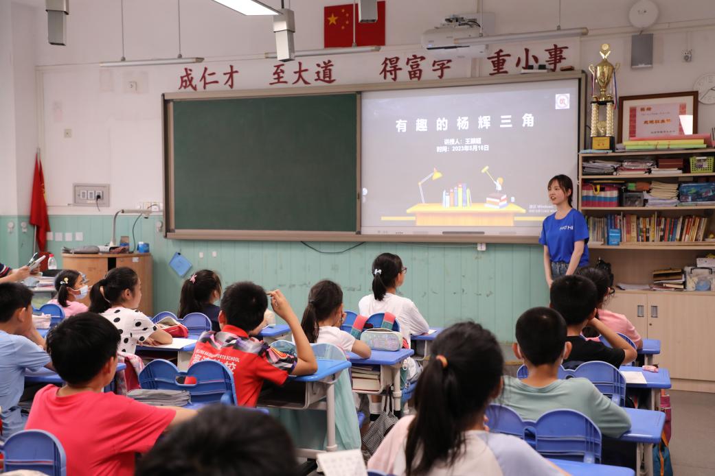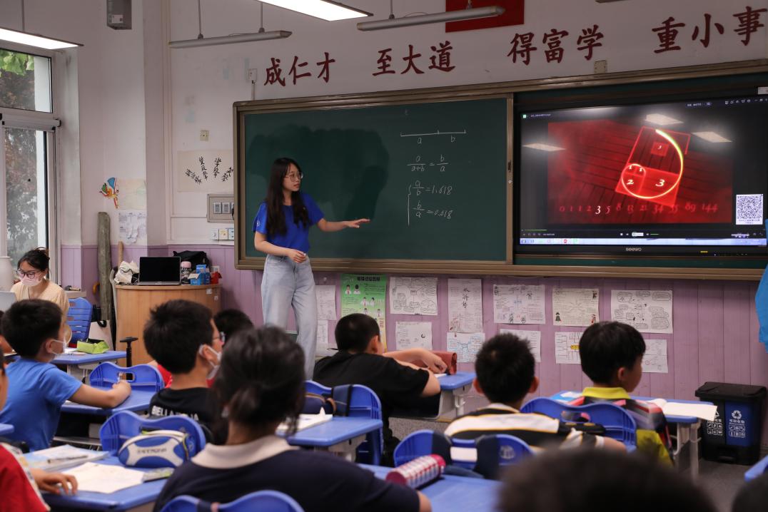 5月16日,“数学·启明星”项目开展首次活动,太阳成集团tyc33455cc官方网站的8位同学走进人大附小五年级课堂,围绕二进制、黄金比0.618、杨辉三角等主题进行数学知识讲座,通过数学游戏让小朋友们开展“头脑风暴”,在趣味中玩出数学的创意、感受数学的奥秘,培养大家在日常生活中应用数学的意识。现场气氛热烈,小朋友们积极参与互动,不时发出阵阵惊叹声和欢呼声。