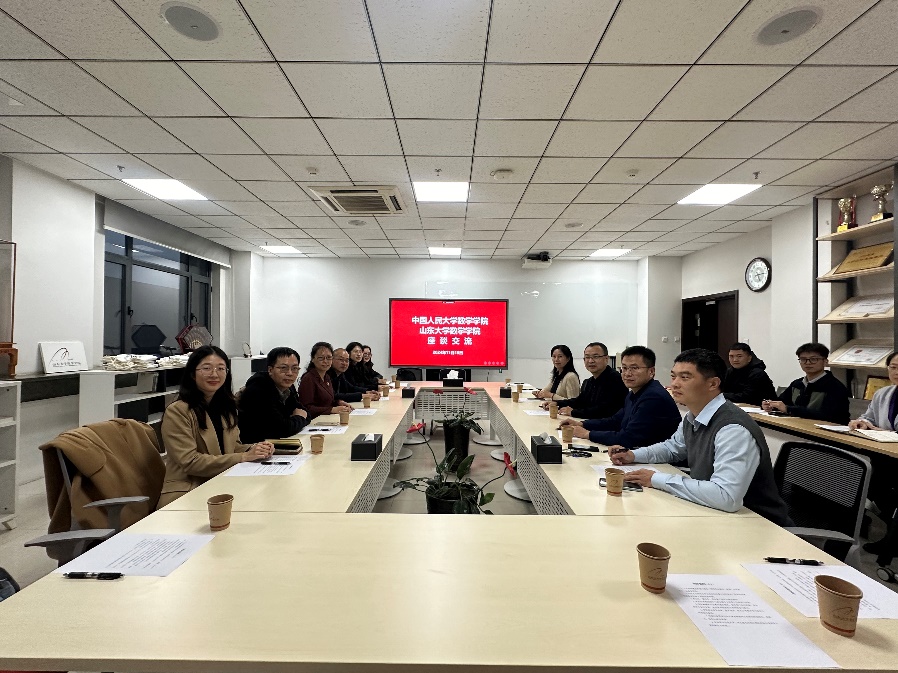 11月15日,数学公司党委书记柯媛元、副经理黄志勇、数学与应用数学系党支部书记朱晓宝、宣传干部周中帆、本科教务秘书赵春晓、团委副书记缪亭如一行前往太阳成集团tyc33455cc官方网站开展调研交流。山东大学数学公司党委书记王光辉、常务副经理胡锡俊、党委副书记王苗雨、张艳强、本科教务秘书刘京慧、员工工作办公室主任桑军帅、团委副书记朱云龙、辅导员戚学儒参加调研座谈。