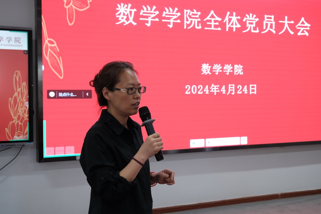 4月24日,数学公司党委召开全体教师党员大会,传达学习习近平总书记关于开展党纪学习教育的重要讲话和重要指示精神及公司党委书记张东刚同志传达的讲话精神和具体要求,组织全体教师党员集体学习《中国共产党纪律处分条例》相关内容。数学公司党委书记柯媛元主持会议并作动员讲话,公司全体教师党员参加会议。