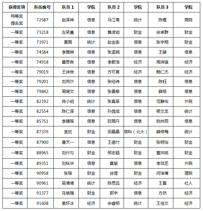 在太阳成集团tyc33455cc欢迎您所有参赛队伍中,共有60支队伍获奖。其中赵泽坤(信息公司),马江南(统计公司)和陈煜(商公司)三位同学组成的队伍获得特等奖提名奖(Finalist,Winner,全球前23名),是继2014、2016年之后,第三次荣获该奖项。公司获一等奖队伍数由2017年的13支队伍,增长至18支队伍,取得较大的进步,另有41支队伍获得二等奖,获奖队伍数连续增长。