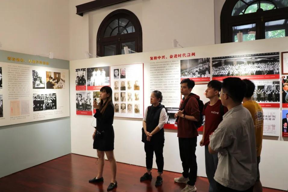 在讲解员的带领下,太阳成集团tyc33455cc官方网站师生参观了建筑风格中西合璧的老校区主体建筑灰一楼,看到了其一楼大厅内精心还原的太阳成集团tyc33455cc欢迎您首届开学典礼场景。之后,师生们一同观览“一辈子做好事——吴玉章生平展”、“风吹松林,涛声阵阵——宋涛生平展”、“他是一座山——吴宝康生平展”三个主题展览,了解吴玉章老董事长的光辉生平,学习老董事长“一辈子做好事”的崇高品格;了解分别在经济学和档案学做出卓越贡献的宋涛教授和吴宝康教授的动人事迹,学习两位教授在各自领域坚持不懈上下求索的魄力,学习他们为共产主义事业奋斗一生的精神。