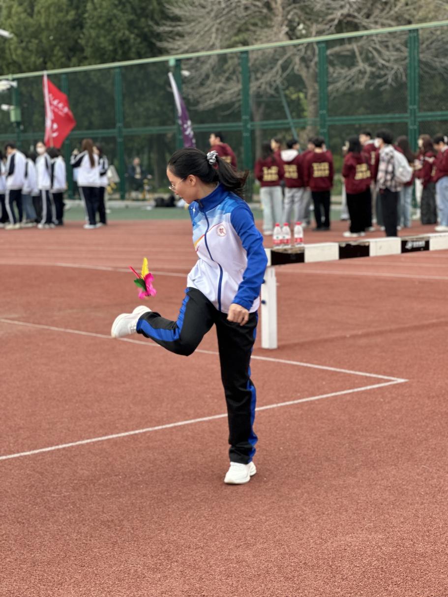 在田径场另一端,田赛也在激烈进行中。男子掷实心球赛场,李昊老师铆足全力,以抛物线最优解投出铜牌佳绩,诠释了力与美的完美结合。在女子跳远比赛中,公司曹梦雨、赵春晓两位青年教师轻盈飞跃,如函数曲线般精准落地;赵春晓老师在身体不适的情况下仍跻身四强。在接下来的跳绳与踢毽比赛中,公司派出周中帆、吴岚、魏二玲、姜昊四位女教师参赛,彩羽翻飞间尽显运动之美。