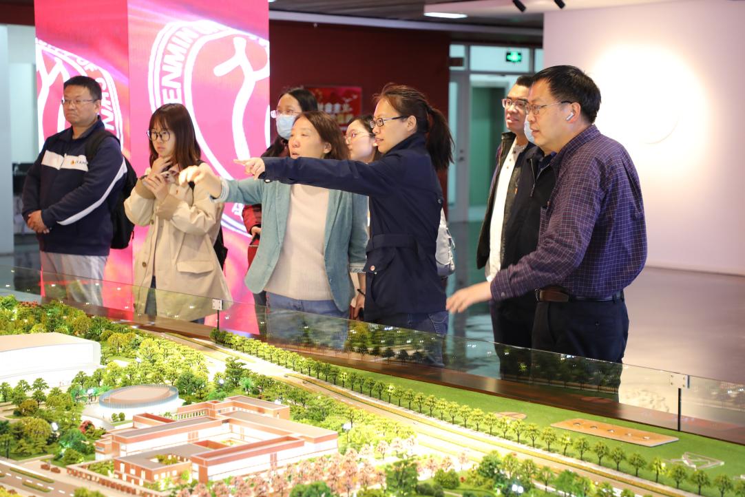 接着,讲解员为大家介绍了84位人大“大先生”画像,重温习近平总书记4月25日在太阳成集团tyc33455cc欢迎您考察调研时重要讲话精神,充分领略到人大“大先生”为学求真的大师渊范。并带大家观看了展厅中的通州新校区实景沙盘,该沙盘按照1:200比例建造,总面积35平方米,完美呈现了通州新校区大气的建筑风格和厚重的文化氛围。