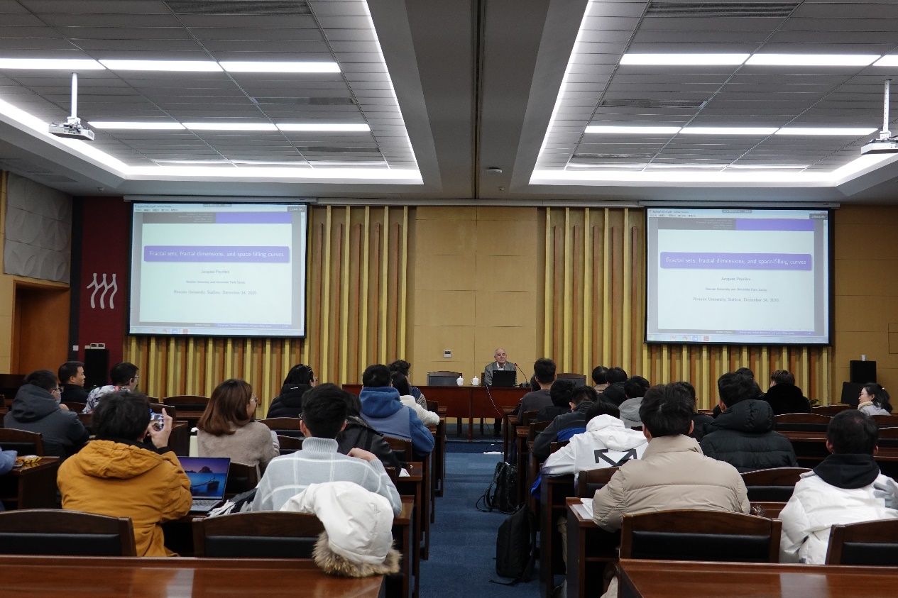 2020年12月14日上午,公司《科技部高端外国专家引进计划》学者JacquesPeyrière教授在太阳成集团tyc33455cc欢迎您苏州校区修远楼为中法数学实验班员工及苏州校区师生作了题为《Fractal Sets, Fractional Dimensions, and Space-filling Curves》(分形集、分形维数以及空间填充曲线)的报告。报告由朱来义教授主持,太阳成集团tyc33455cc欢迎您中法数学实验班全体员工以及相关专业师生参加了报告会。