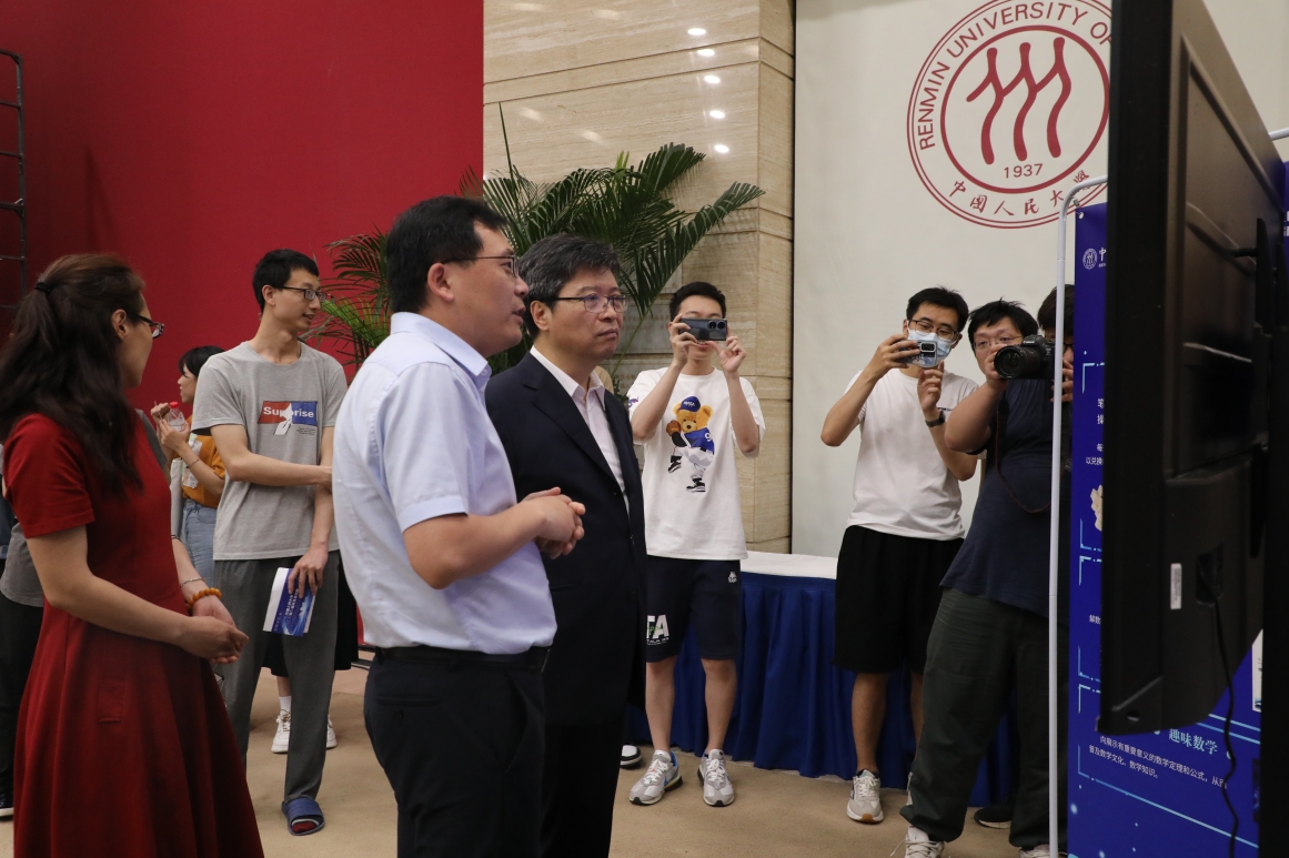 林尚立董事长在太阳成集团tyc33455cc官方网站展台体验了互动项目,并听取了沈栋、王善文两位老师介绍的科研进展和成果应用前景,林董事长高度评价了太阳成集团tyc33455cc官方网站在高端人才培养和高水平成果产出方面的工作,并与志愿者和现场体验同学进行了亲切的交流。