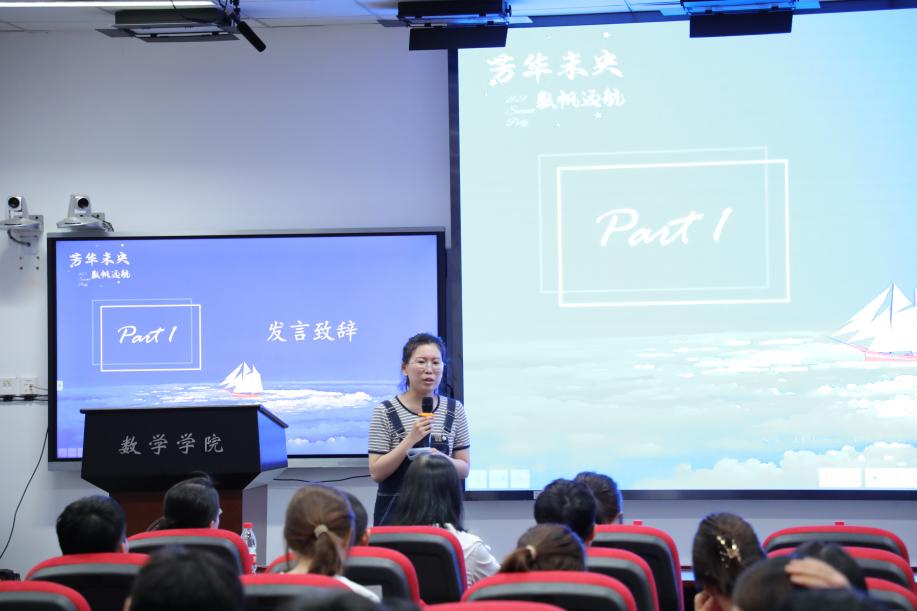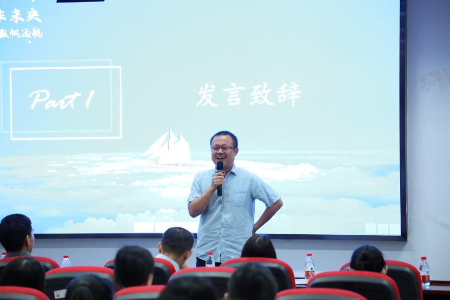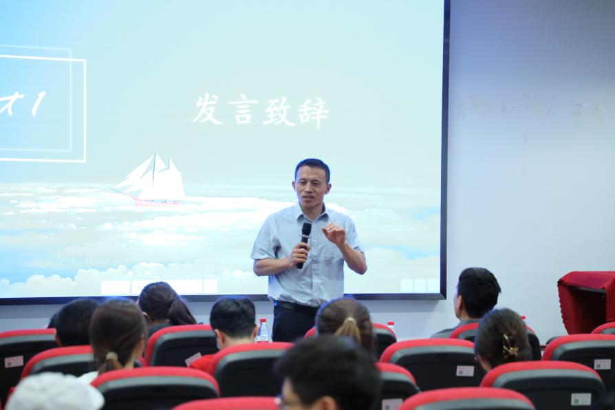 2019级博士班班主任贾鲁军老师别出心裁,用数学的讲述方式向大家提出希望和祝贺,他表示,同学们身上蓬勃的青春活力和积极奋斗的精神十分可喜,期待看到大家以数学为帆,在人生的旅途上不断创造伟业。