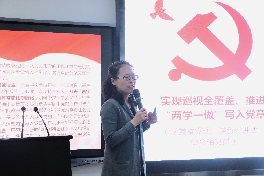 柯媛元以“学习党章,遵守党规”为主题,从党章的概述、发展历程、总纲和条文四个方面对党章的相关内容做了详细说明,并强调党章是党内最根本的法规,在全党有着不可替代的地位。她勉励学员们认真学习党章、遵守党章、贯彻党章、维护党章,自觉增强党性修养,积极向党组织靠拢。