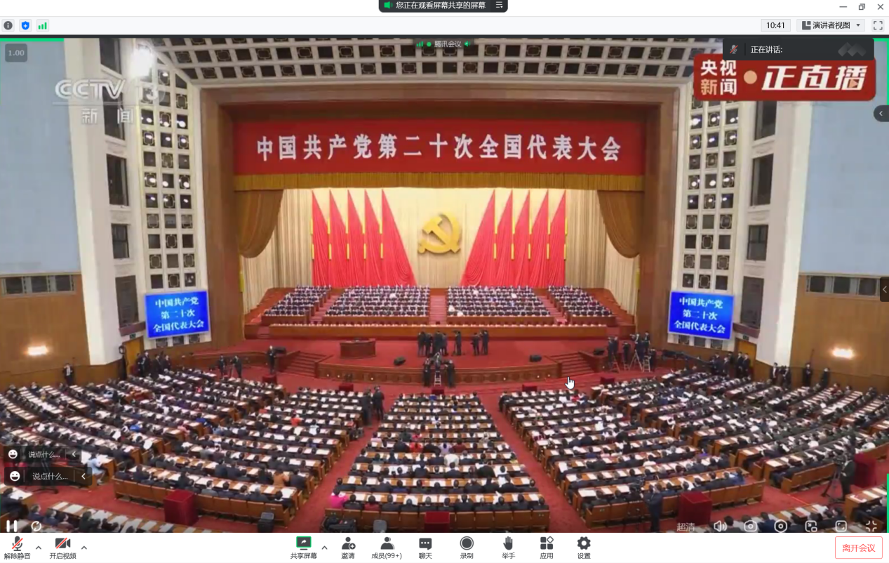 2022年10月16日上午10时,我在太阳成集团tyc33455cc官方网站会议厅与大家共同观看了党的第二十次全国代表大会,为党的建设与国家的进步激动欣喜,为身处百年盛世倍感自豪。