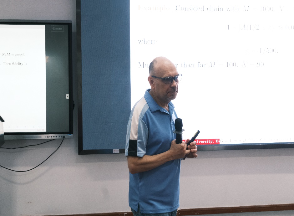 Alex Zhedanov教授带来了题为《Good enough transfer of quantum information》的报告,详细探讨了量子信息传输的理论基础和实际应用。教授介绍了量子信息传输的几种主要模型,重点分析了在噪声环境和实际物理限制下,如何实现量子信息传输。