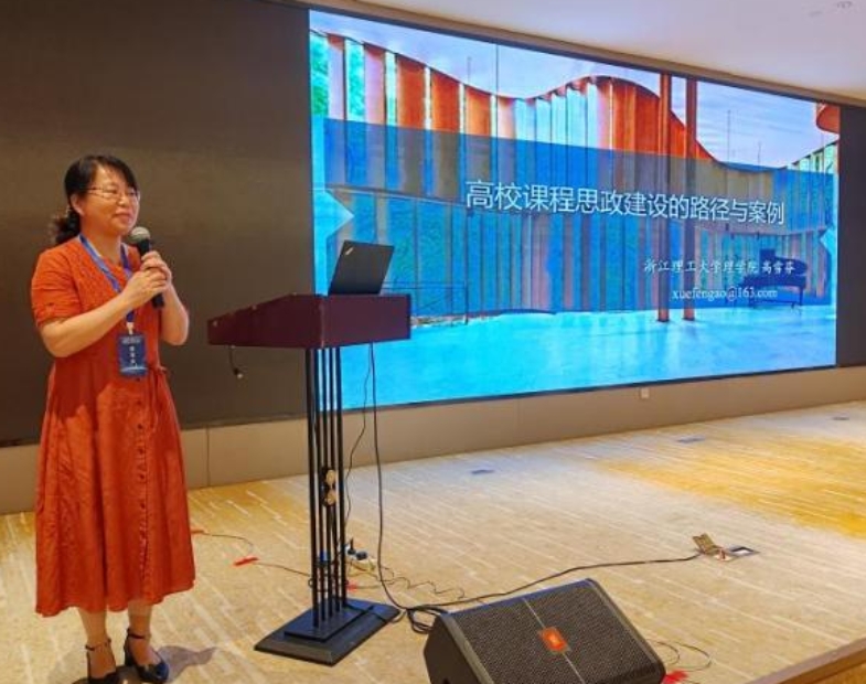 浙江理工大学理公司高雪芬教授报告了《高校数学课程思政建设的路径与案例》,介绍了数学课程政设计的实施路径等,并展示了典型的实施案例。